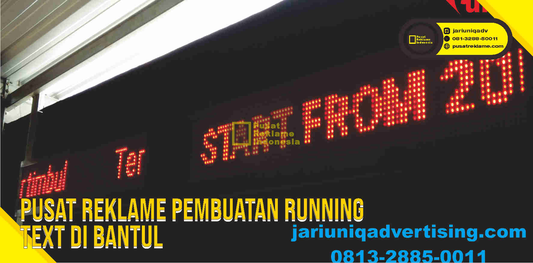 Bagi Anda yang tertarik untuk membuat running text untuk keperluan bisnis atau lainnya, di kota bantul, Anda dapat menghubungi kami untuk informasi lebih lanjut. Kami siap memberikan konsultasi terkait harga dan kebutuhan Anda secara gratis sebelum memutuskan untuk membuat running text.