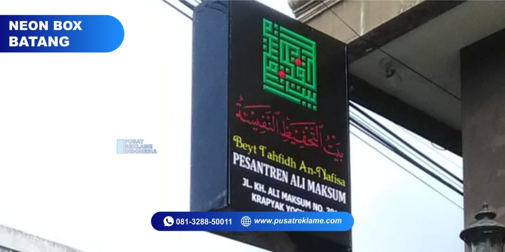 Pusatreklame jogja dapat menjadi alternatif yang bisa diandalkan untuk membuat neonbox berkualitas di daerah Batang dan sekitarnya. Penggunaan neon box di kota Batang sudah cukup lazim ditemukan karena sifatnya yang menarik, unik, dan mampu menarik perhatian jika hasil rangkaiannya dibuat semenarik mungkin.